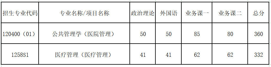 2026年报考公共管理学医院管理硕士研究生、医疗管理硕士研究生考生入围复试分数线如下表所示: